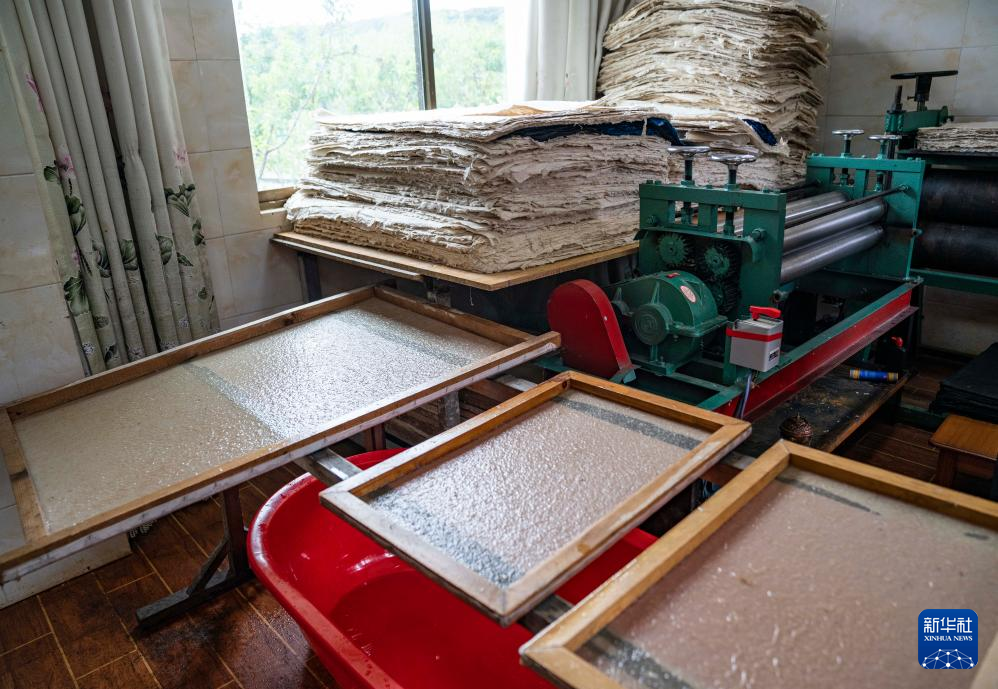 这是制作完成后正在晾晒的藏纸(7月26日摄)。新华社记者 孙非 摄