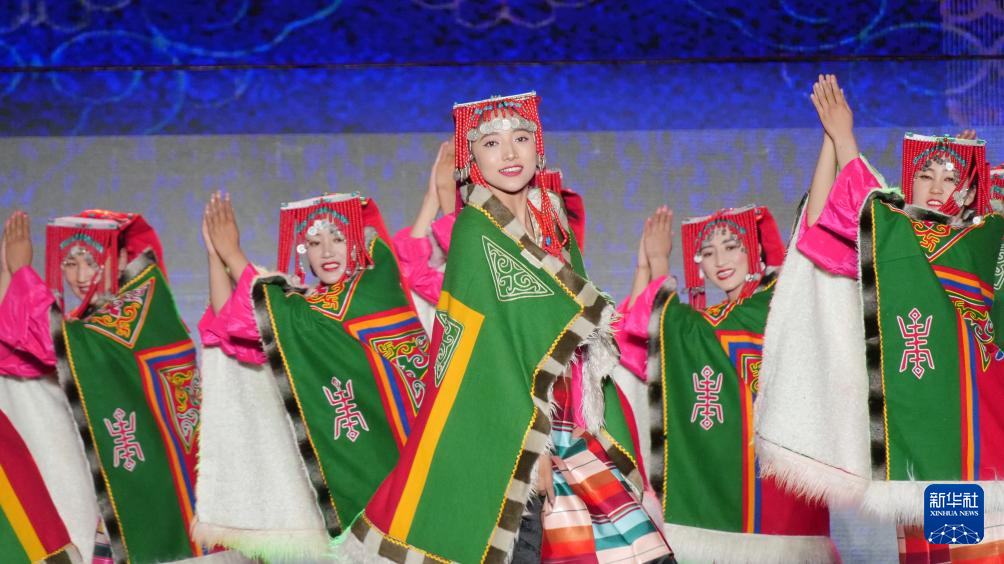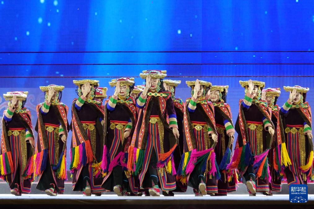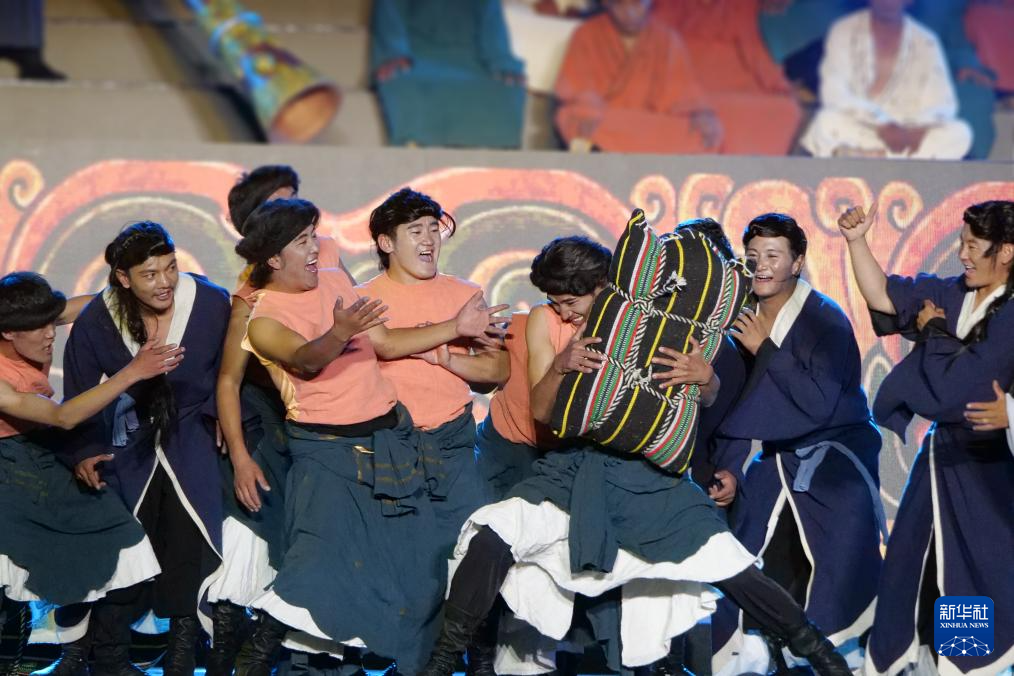 第八届象雄文化旅游节开幕式现场的文艺表演(8月21日摄)。