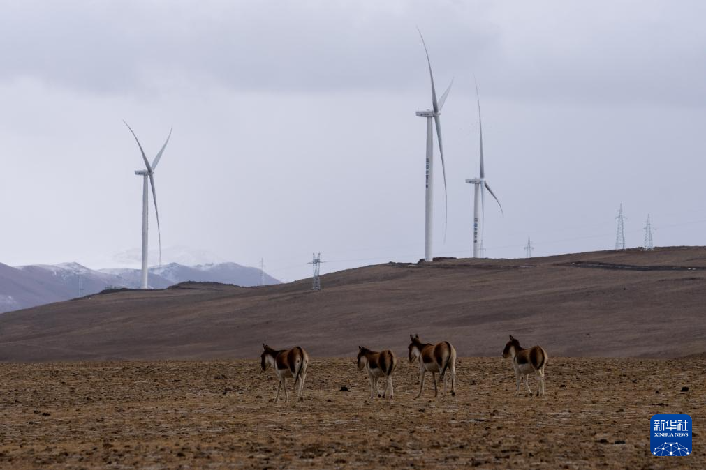 这是1月16日在西藏山南市措美哲古风电场拍摄的藏野驴。新华社记者 旦增尼玛曲珠 摄