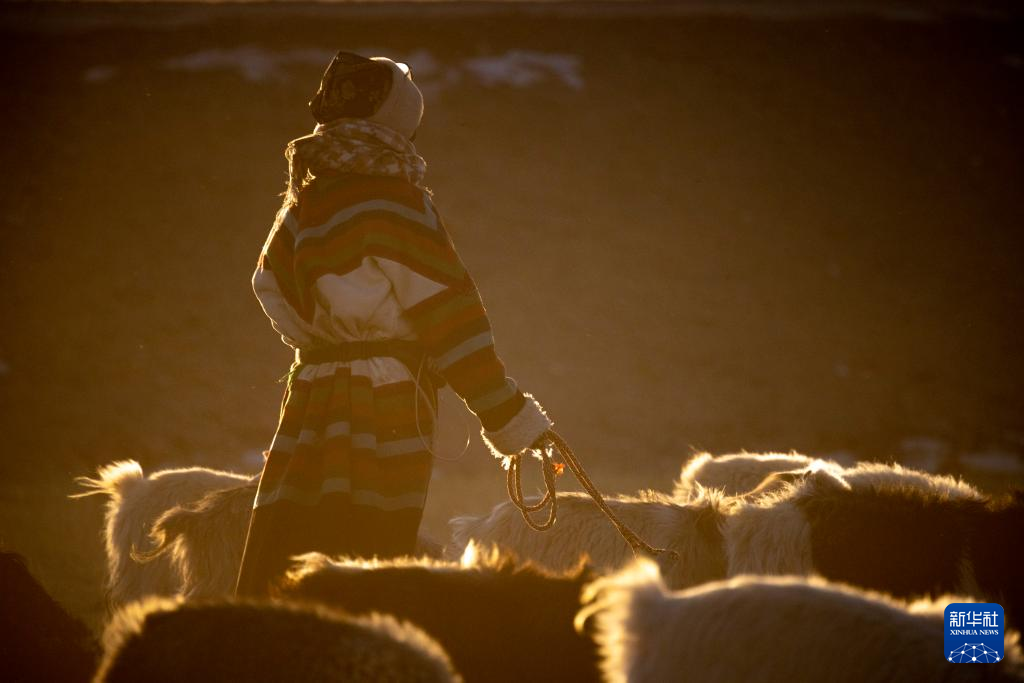 2023年末,记者在马迁村遇到独自放羊的丹增。那天,尼玛全县出现了大风天气,局地风力达到12级,傍晚的气温就达到零下十几摄氏度。尽管丹增穿着最厚的氆氇,只有眼睛露在外面,一整天的户外劳作还是让她浑身冰冷酸痛。“手指尖全都冻僵了,疼得不得了。”她说。