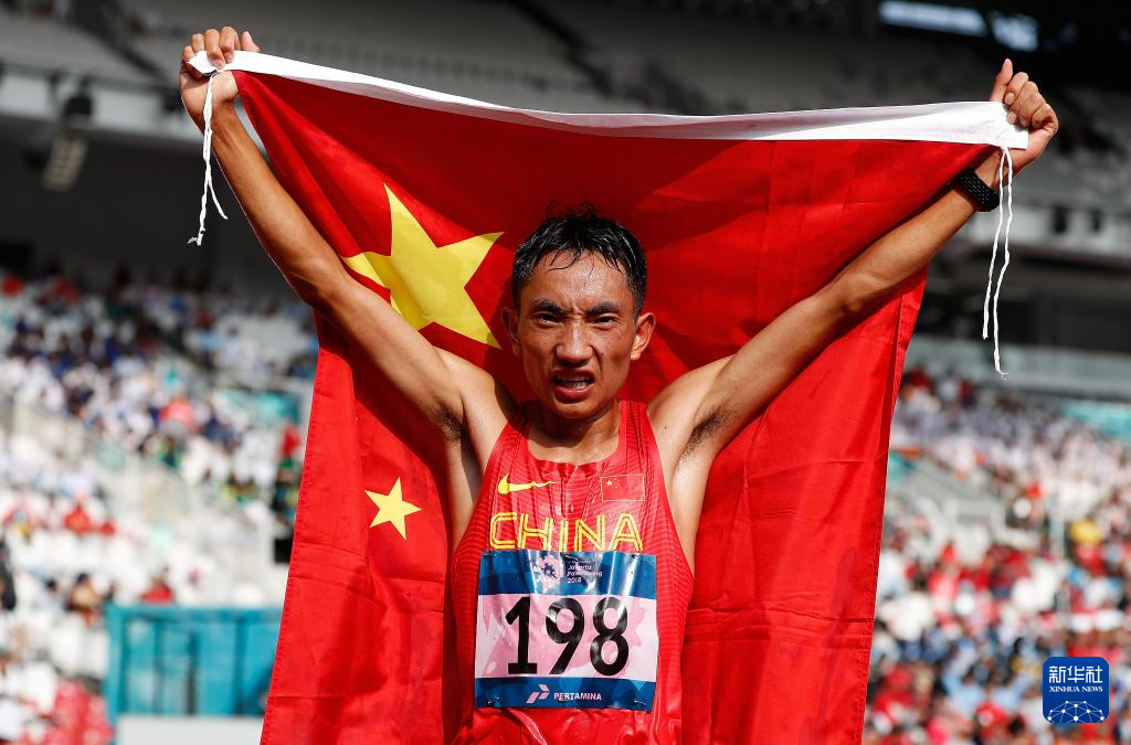 2018年第18届亚运会田径男子马拉松赛中,中国选手多布杰获得季军。新华社记者 王丽莉 摄