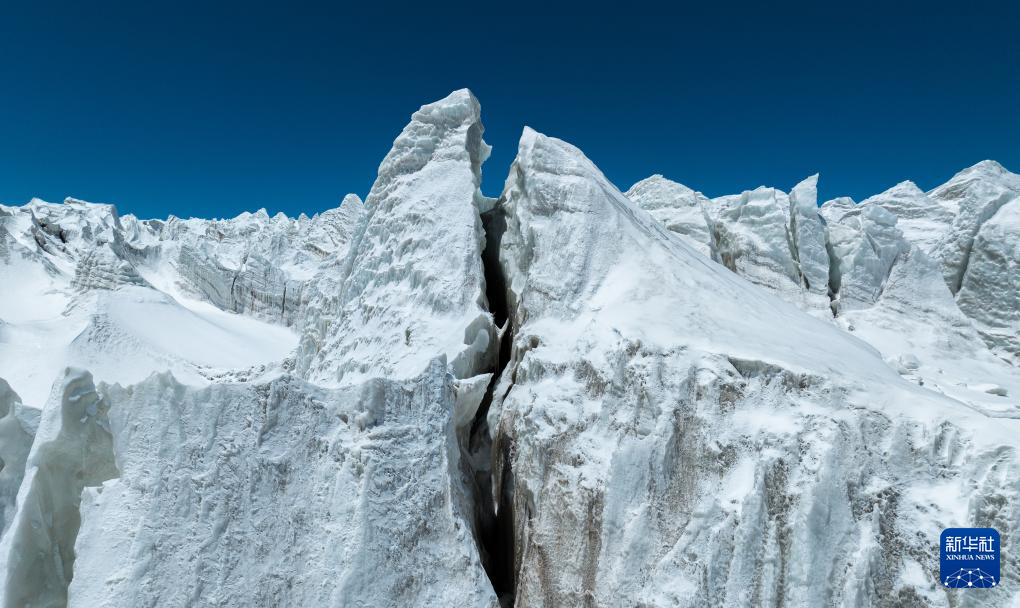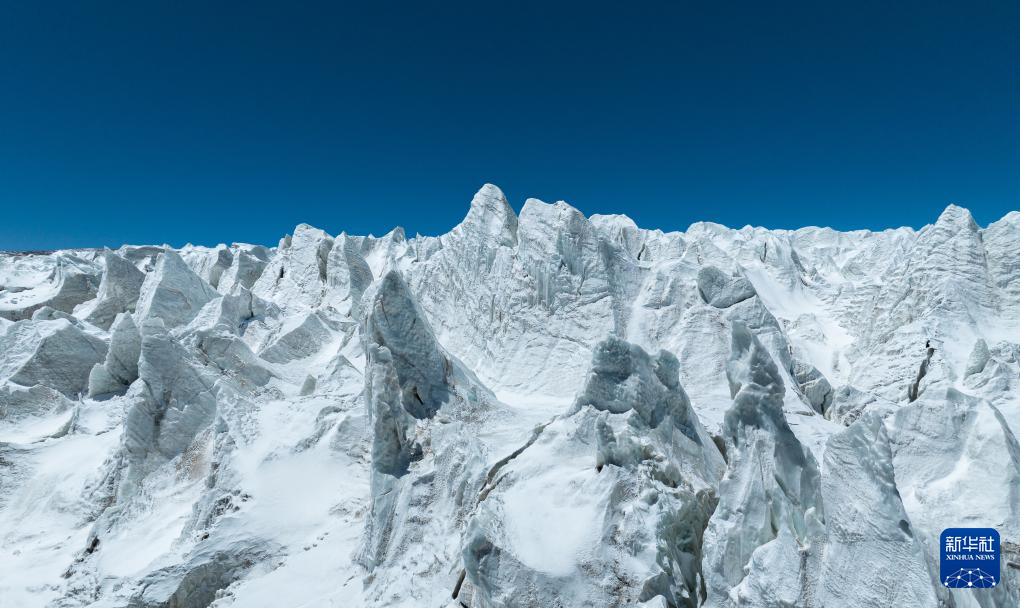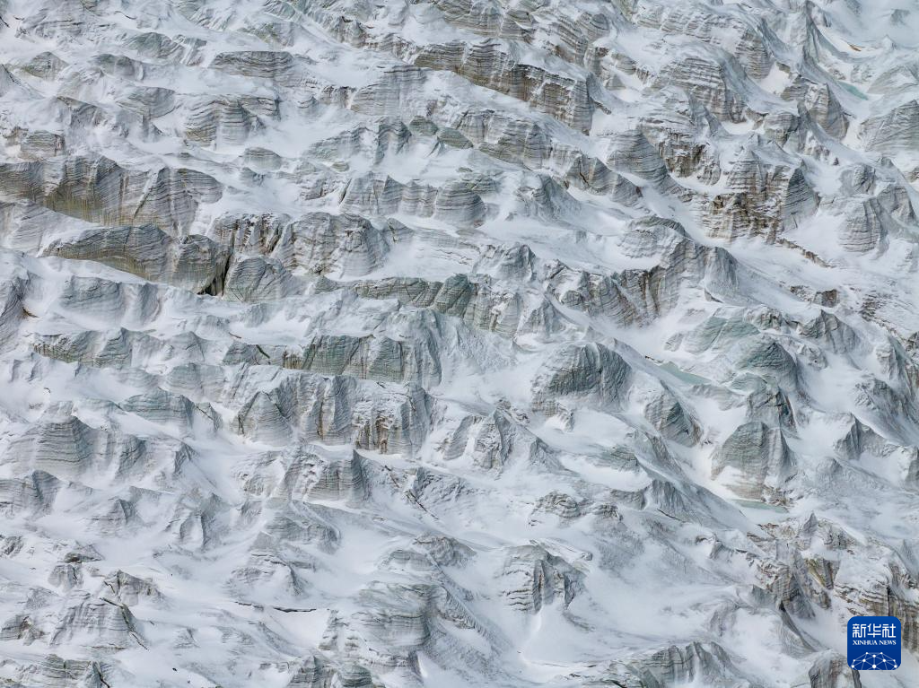 藏色岗日冰川冰塔林(无人机照片,5月11日摄)。新华社记者 姜帆 摄