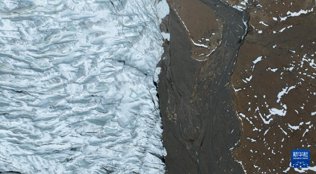 藏色岗日冰川的冰舌(无人机照片,5月11日摄)。新华社记者 姜帆 摄