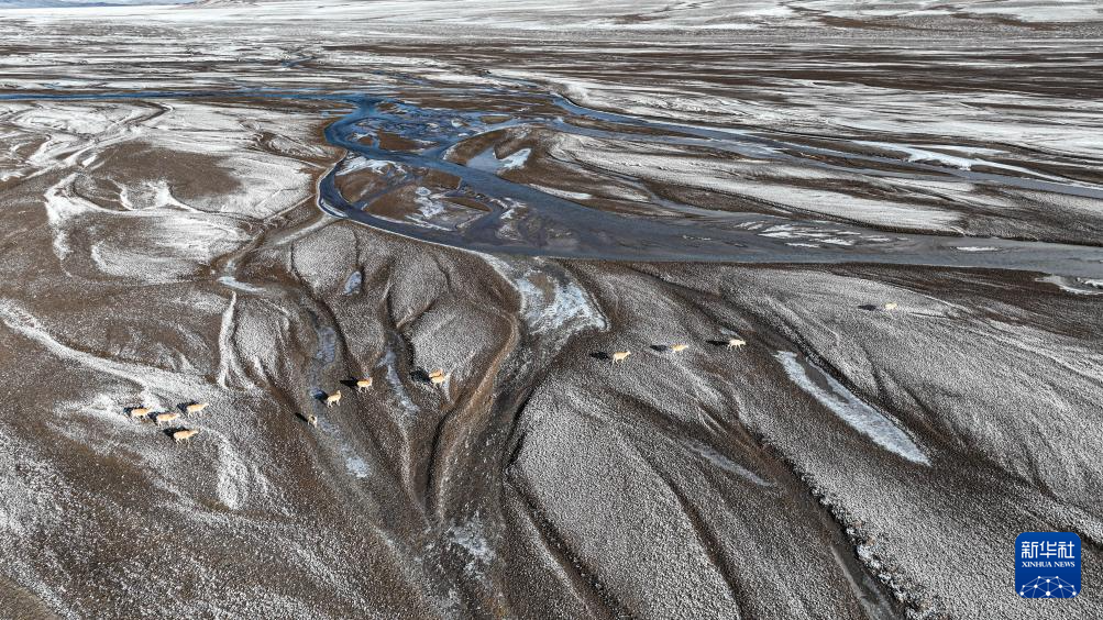 位于西藏羌塘国家级自然保护区内的甜水河是藏羚羊迁徙产仔的重要通道。每年6月,会有众多藏羚羊途经此地。空中俯瞰,甜水河河床支流密布,景色壮美。