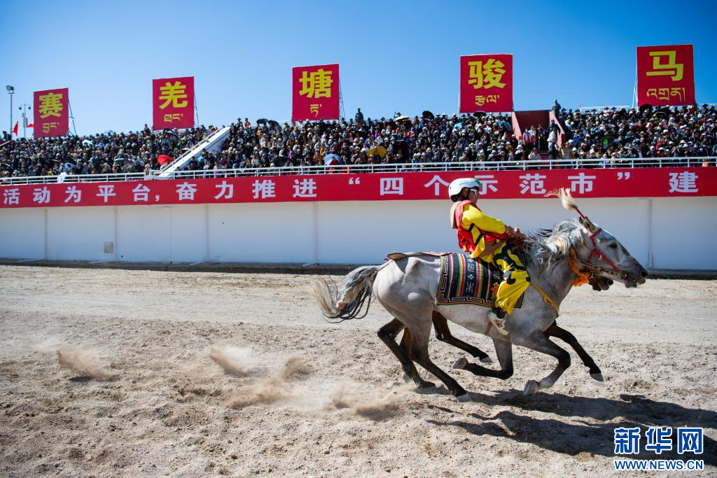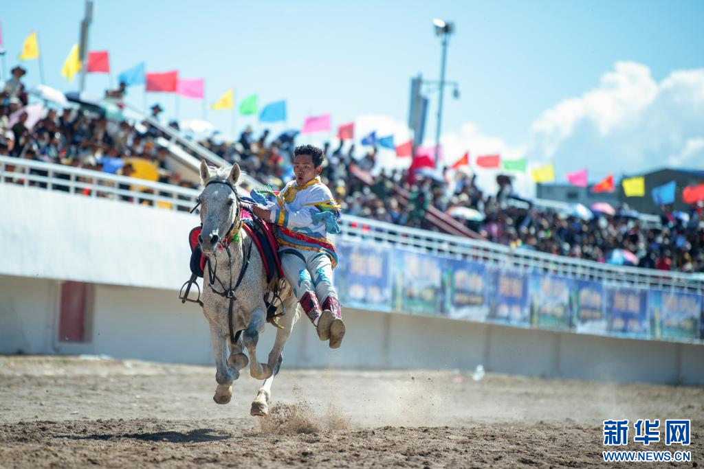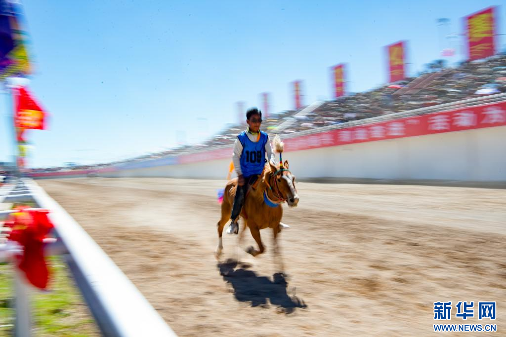 8月11日,骑手在走马比赛中。新华网 旦增努布 摄
