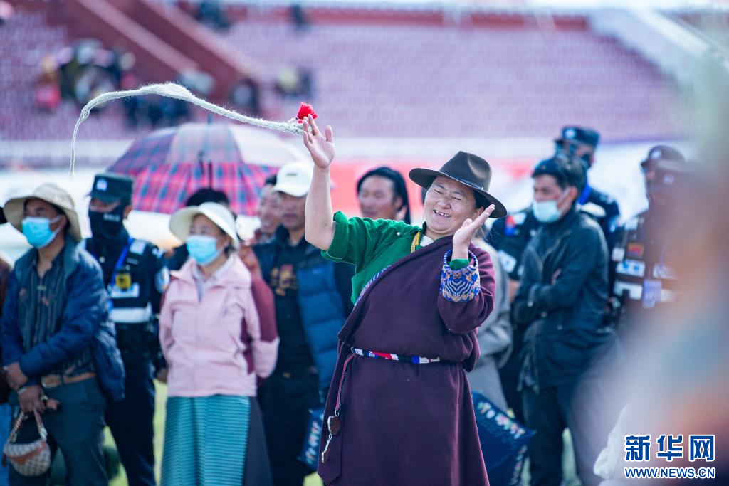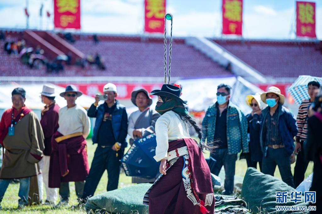 8月11日,选手在吾尔朵比赛中。新华网 旦增努布 摄