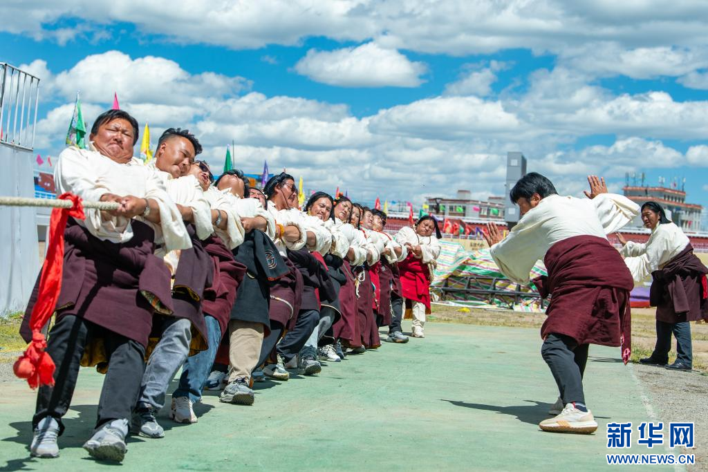 8月11日,拔河比赛现场。新华网 旦增努布 摄