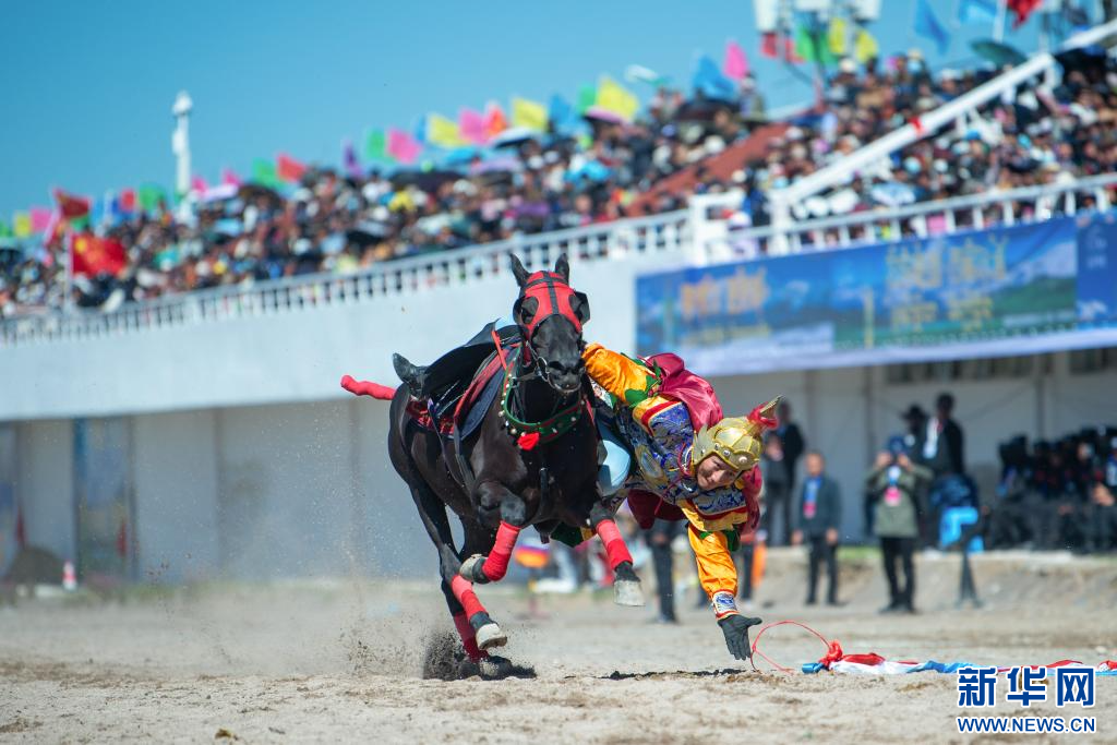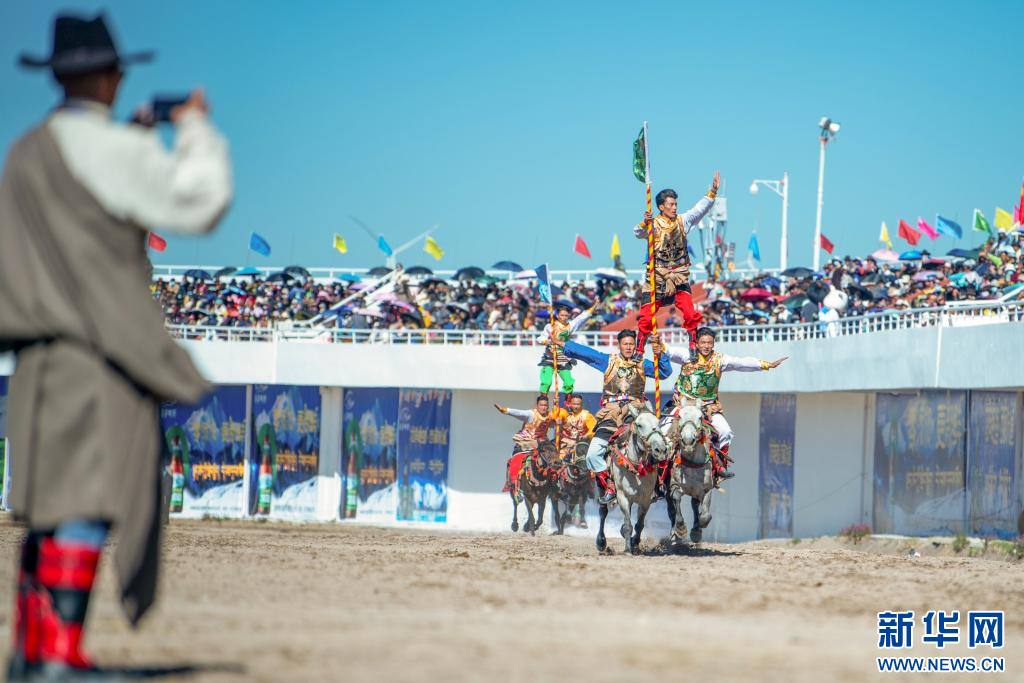 8月10日,2024年恰青赛马节开幕式马术表演。新华网 旦增努布 摄