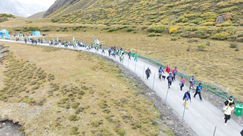 此次赛事是措美县践行“健康中国”战略的生动实践,通过“文旅+体育”模式与特色队伍设置,创新组建“湖韵队”“峰行队”“探途队”三支队伍,进行队内比拼,比赛中队员们相互帮助,相互搀扶,处处展现着友谊第一、比赛第二的生动画面。75名参与者齐聚恰拉脱岗雪山腹地,以脚步丈量小众秘境,用毅力诠释运动精神,在高原风光中传递对祖国的美好祝福。