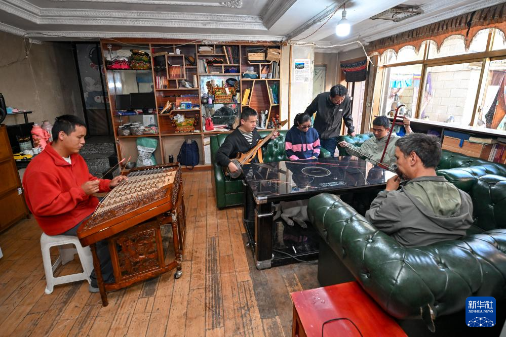 在其美多吉老师的悉心指导下,这群年轻人逐渐掌握了二胡、扬琴、扎念琴等传统乐器,开始了朗玛堆谐的表演生涯。“那会儿天不亮就起床,练三个小时才吃早饭,然后一直练到天黑。”乐团主唱次仁曲珍回忆道,“刚开始时,一两个月才能学会一首曲子。”