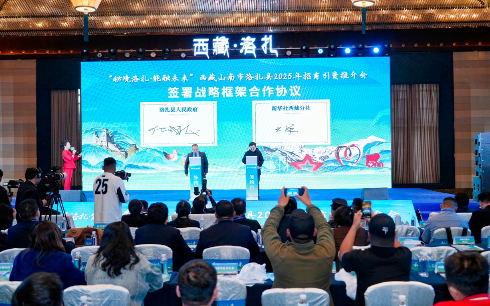 据悉,推介会上总签约金额达30.71亿元,并与新华社西藏分社、拉萨经济技术开发区商会签署战略合作协议,在品牌宣传推广、产业发展、智库支持,以及企业资源精准对接等方面将建立长效协作机制,为县域发展搭建更高层次合作平台。 图为洛扎县人民政府与新华社西藏分社签署战略框架合作协议。新华网 旦增努布 摄