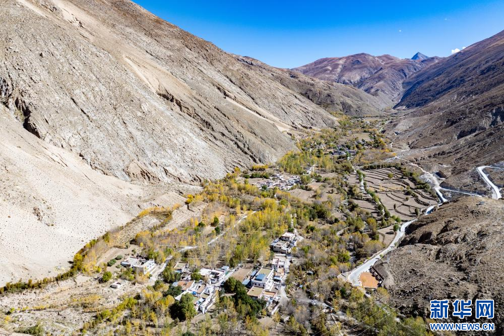 10月17日拍摄的西藏拉萨市尼木县吞巴镇吞达村(无人机照片)。新华网 旦增努布 摄