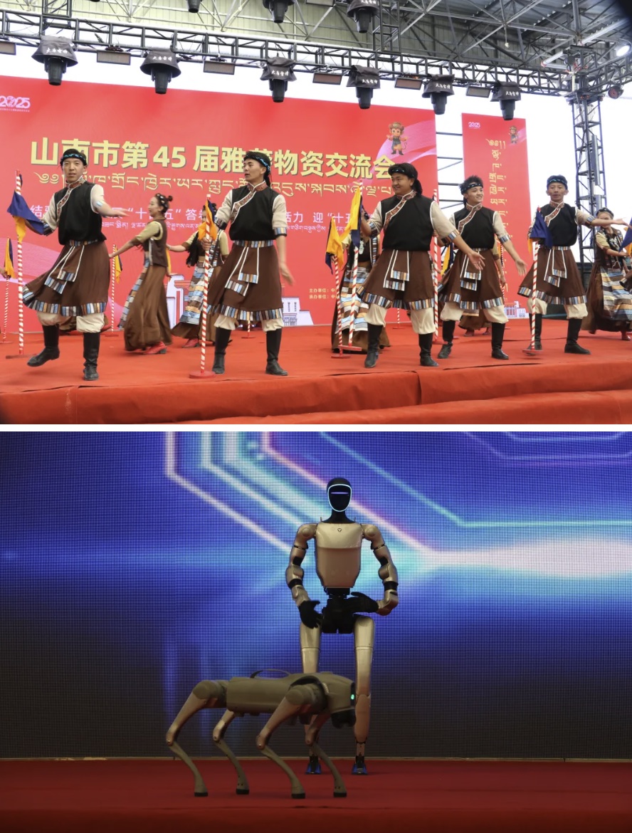 开幕式后,现场举行了精彩的文艺汇演。乃东区艺术团带来具有浓郁民族特色的歌舞表演,展现了雅砻文化的独特魅力。山南市雅投商贸有限公司特别推出机器人表演,传统与现代元素交相辉映,为开幕式增添了科技感与创新活力,赢得了现场观众的热烈掌声。
