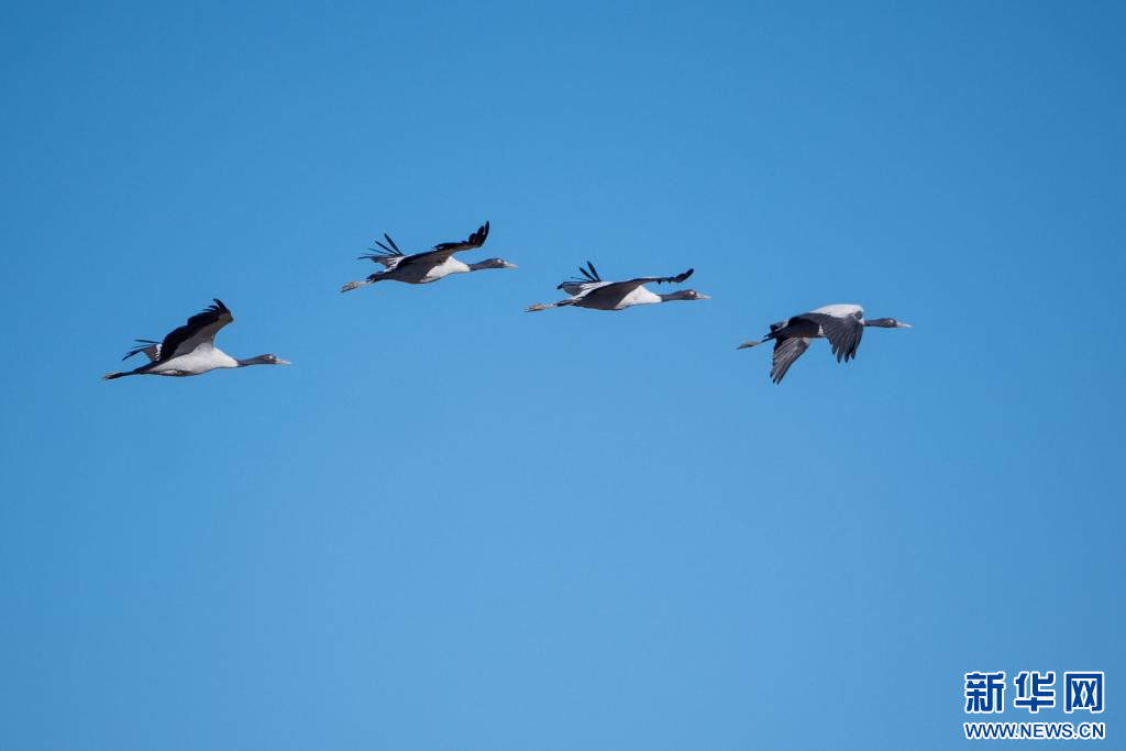 12月18日,在西藏日喀则市南木林县境内拍摄的黑颈鹤。新华网 旦增努布 摄