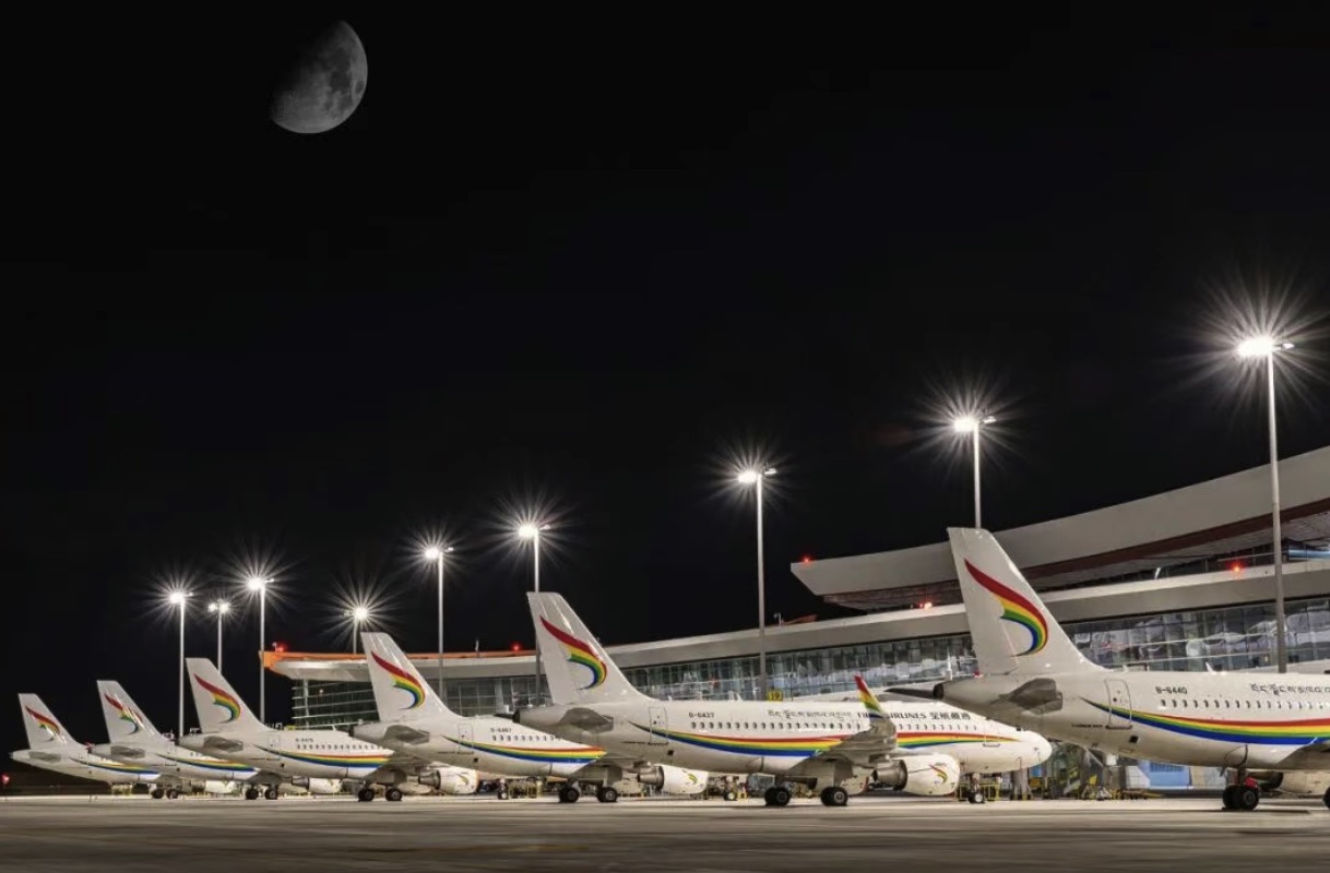 西藏地域辽阔、地形复杂,航空运输长期以来是连接雪域高原与内地的重要纽带。截至目前,西藏航空在拉萨贡嘎国际机场投入驻场运力十余架,是区内唯一实现夜航常态化运行的航空公司。公司累计开通涉藏航线50余条,覆盖所有援藏省市,执飞的高高原航线比例超过50%,逐步构建起以拉萨为中心、辐射西藏全域的“空中走廊”。通过加密航班、优化时刻,西藏航空有效提升了偏远地区民众的出行效率。