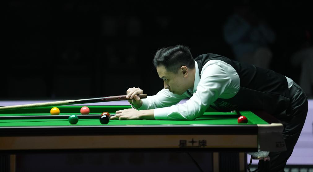 中国选手肖国栋在2025拉萨冬季高原斯诺克挑战赛比赛中。新华社记者 晋美多吉 摄