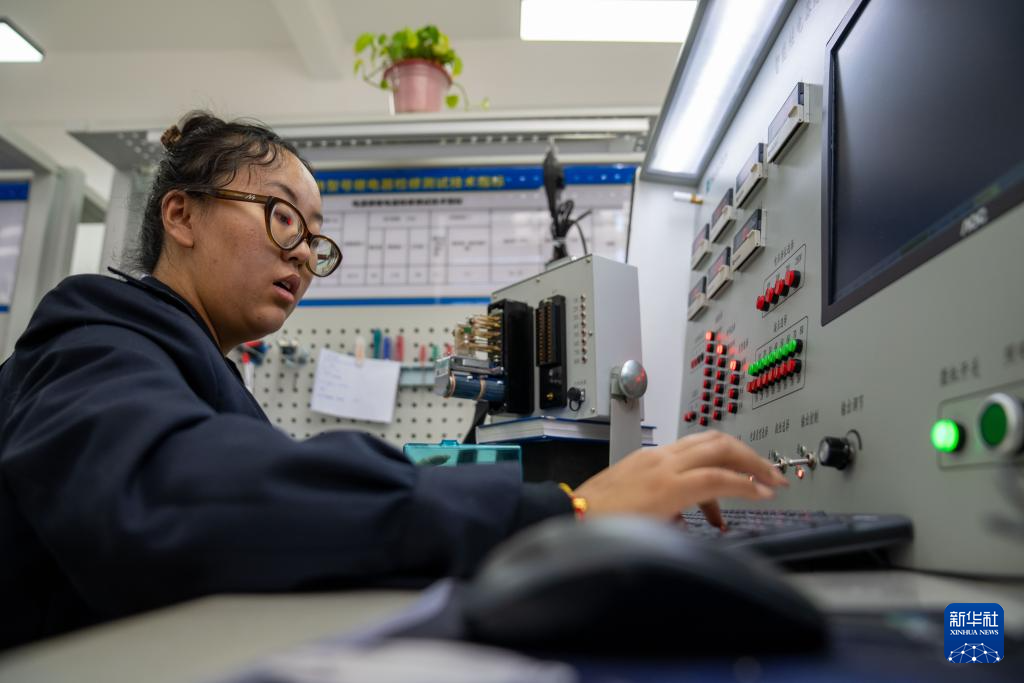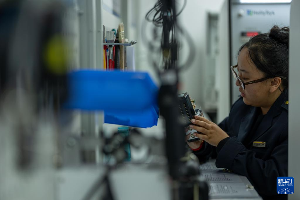 1月6日,拉萨基础设施段电务专修车间继电器检修工区的信号工德吉卓玛在检测继电器。新华社记者 旦增尼玛曲珠 摄