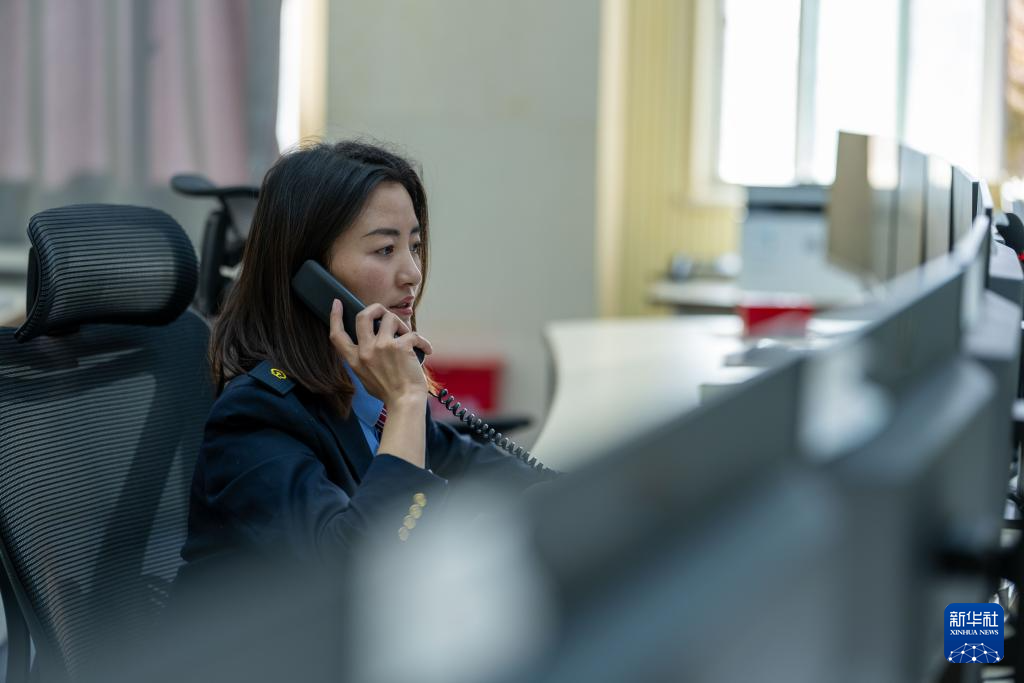 1月6日,拉萨基础设施段安全生产指挥中心调度计划监控组拥吉正在接听现场车间电话。新华社记者 旦增尼玛曲珠 摄