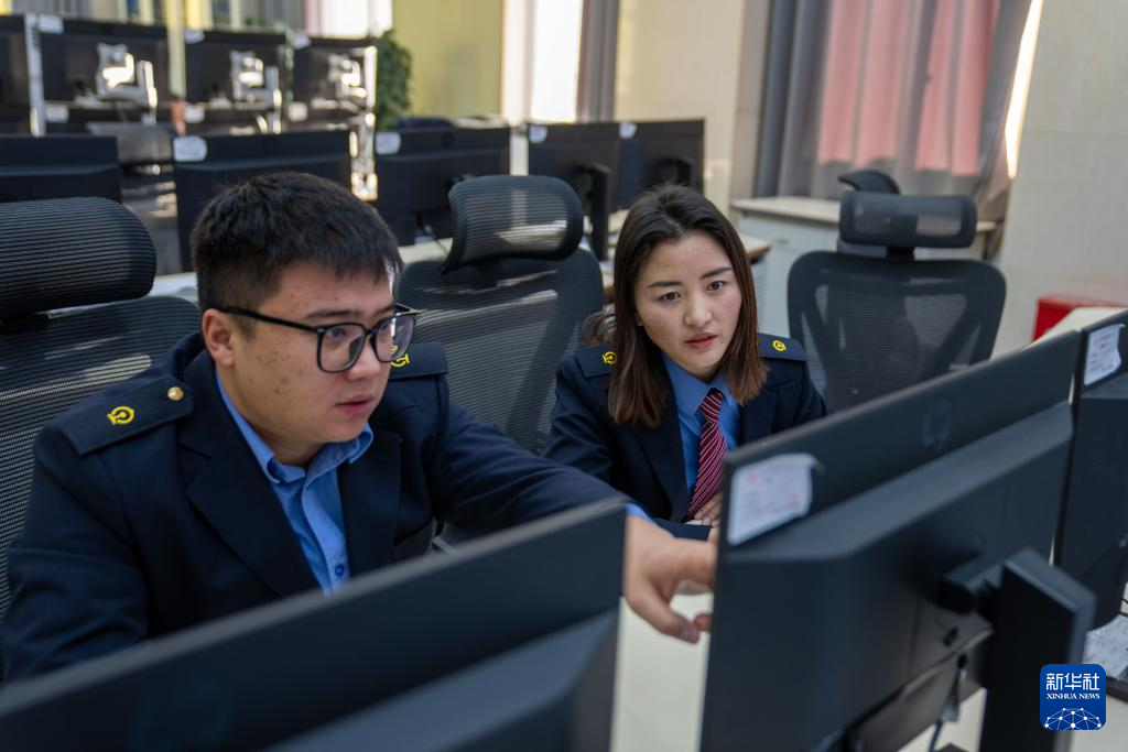 1月6日,拉萨基础设施段安全生产指挥中心调度计划监控组拥吉正在调阅监测数据。新华社记者 旦增尼玛曲珠 摄