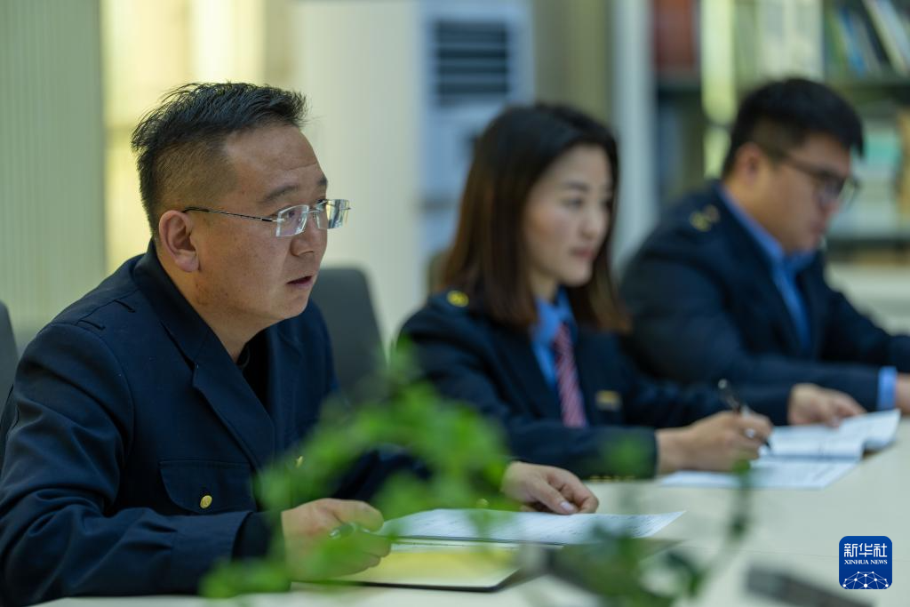 1月6日,拉萨基础设施段安全生产指挥中心主任王义虎(左1),正在对当日重点工作进行重点提示。新华社记者 旦增尼玛曲珠 摄