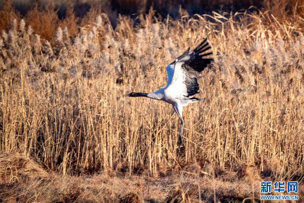 1月9日,在拉萨市拉鲁湿地拍摄的黑颈鹤。新华网 旦增努布 摄