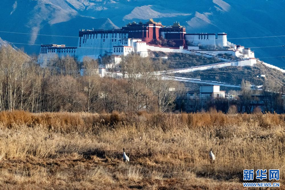 近日,西藏拉萨市拉鲁湿地迎来黑颈鹤越冬。这群“高原仙子”在草甸间觅食翩跹,与布达拉宫、拉萨城、湿地风光相映成趣。海拔超过3600米的拉鲁湿地,素有“拉萨之肺”美誉,是“世界海拔最高的城市天然湿地”。