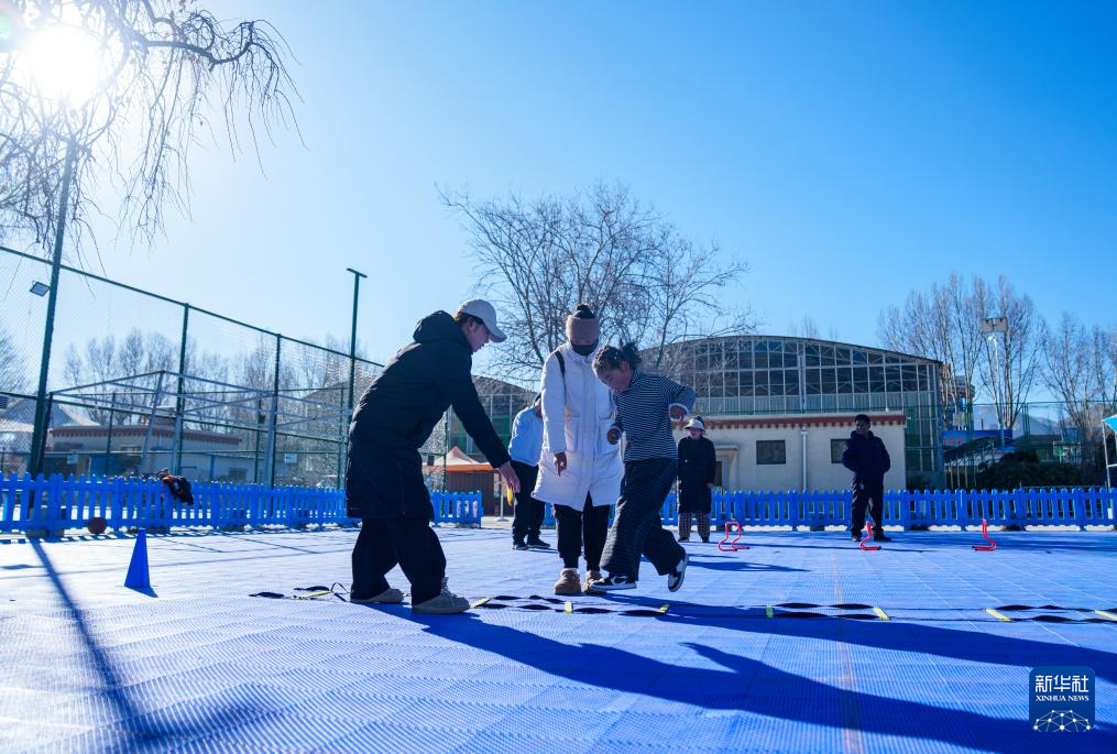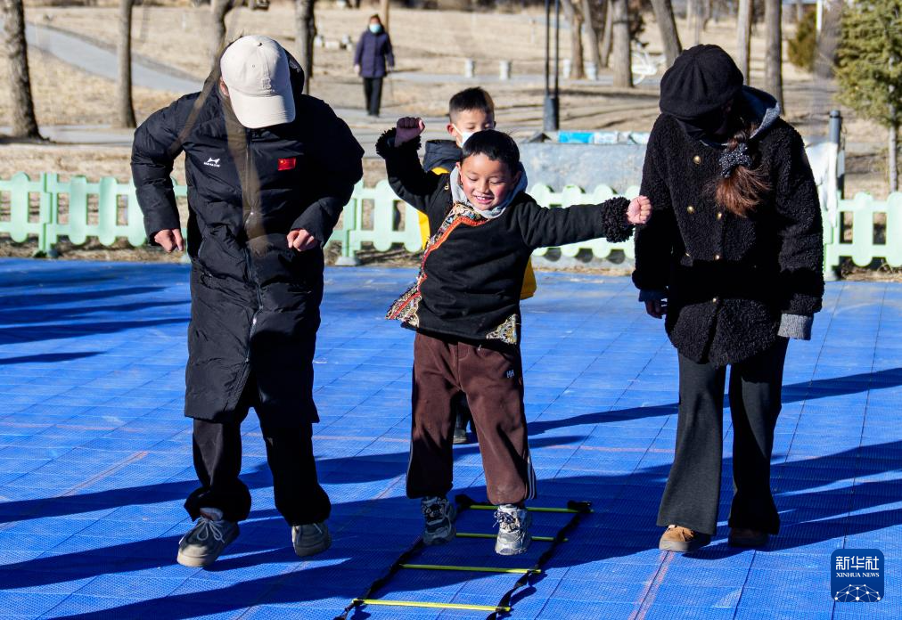1月22日,在拉萨市全民健身体彩公园内,残障儿童在家长陪同下参加“阳光残障儿童公益兴趣班”体适能训练课程。新华社记者 丁增尼达 摄
