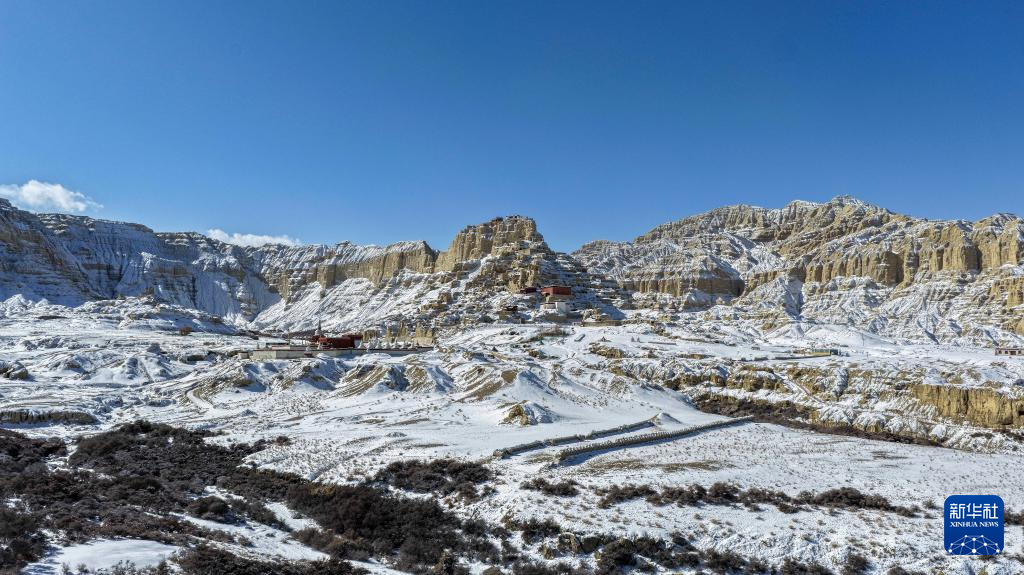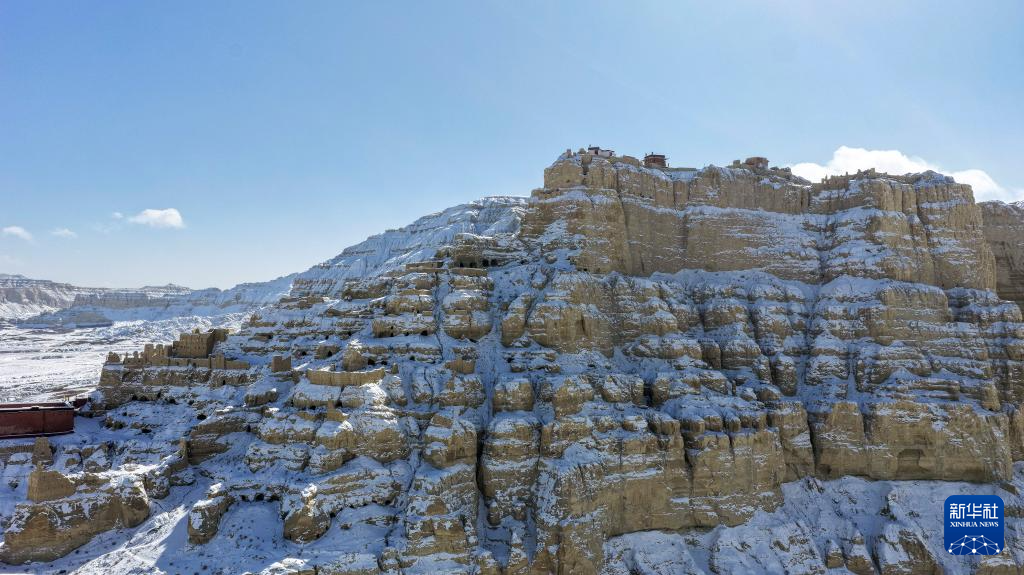 这是1月24日拍摄的古格王国遗址雪景(无人机照片)。新华社发(旦真次旦摄)