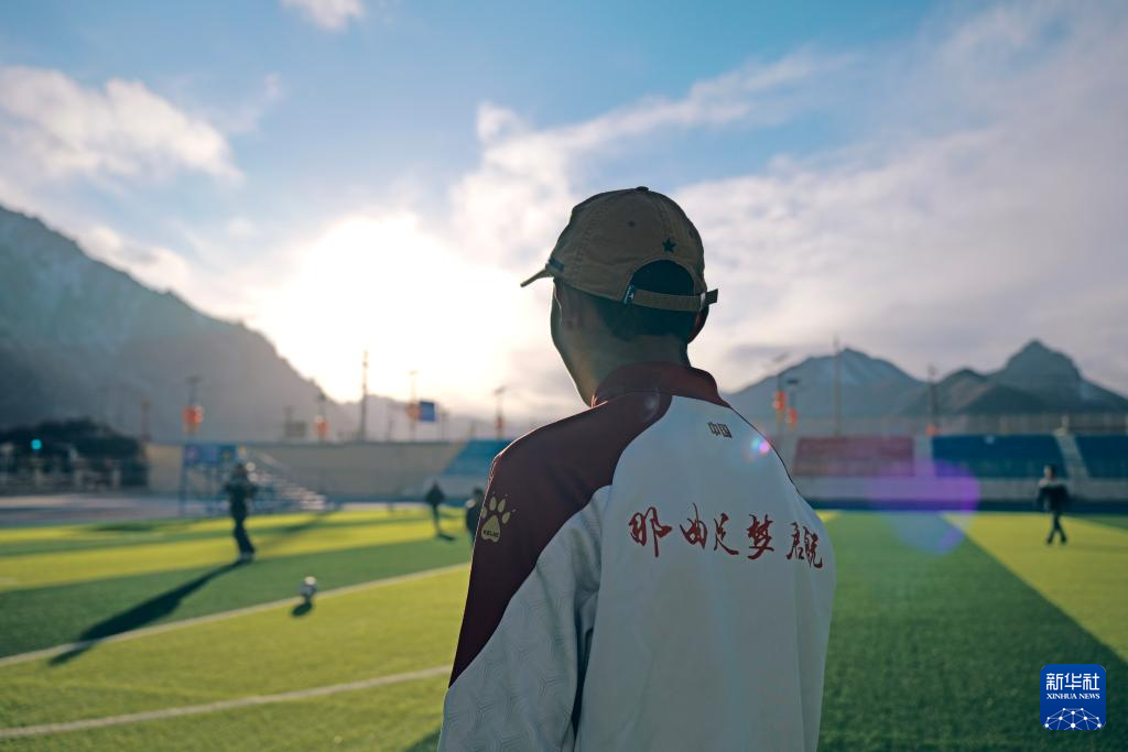 顿珠嘉措是嘉黎县中学初二的学生,也是该校足球队的成员。嘉黎县中学的球场被当地人称为“雪山下的梦幻球场”,球场背靠连绵的雪山,白云飘荡在蓝天。尽管嘉黎县海拔高、空气稀薄,但是当地孩子们对体育运动的热爱不减。