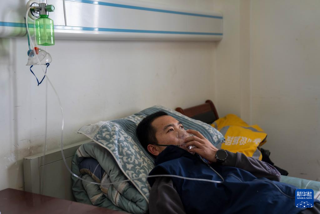 1月24日,扎加藏布信号工区职工陈占彪返回工区后在宿舍吸氧。新华社记者 旦增尼玛曲珠 摄