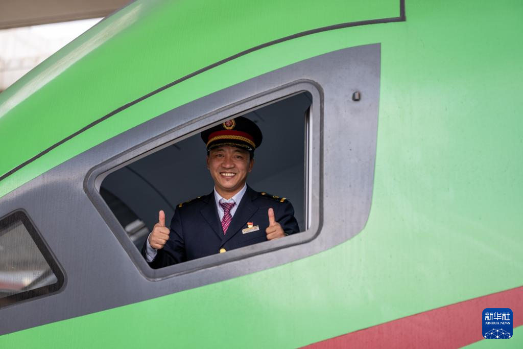 2月14日,斯朗旺扎准备驾驶“复兴号”动车组执行春运任务。新华社记者 旦增尼玛曲珠 摄