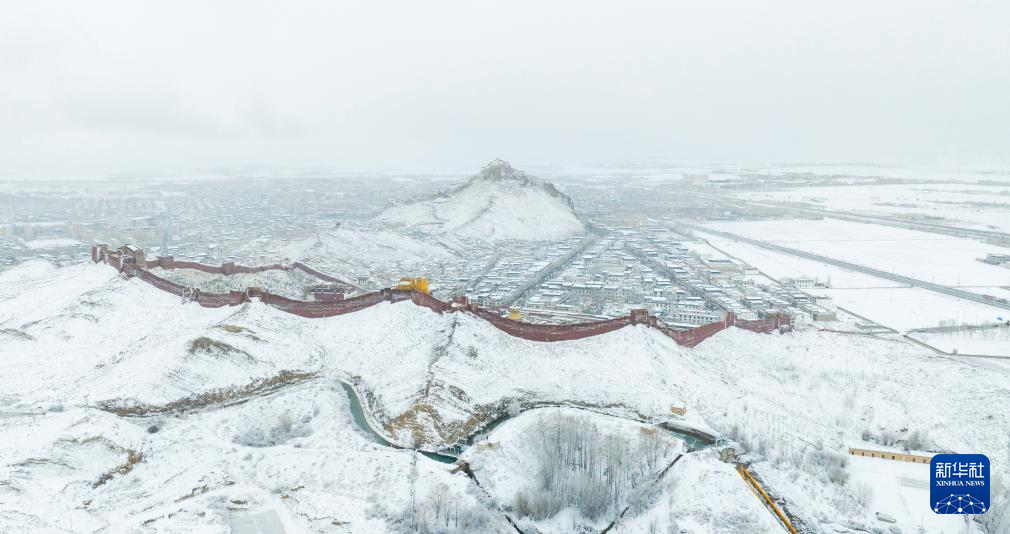 3月13日,一场春雪让西藏日喀则市江孜县全国重点文物保护单位江孜宗山古堡银装素裹,与雪域高原田园风光相映成景。