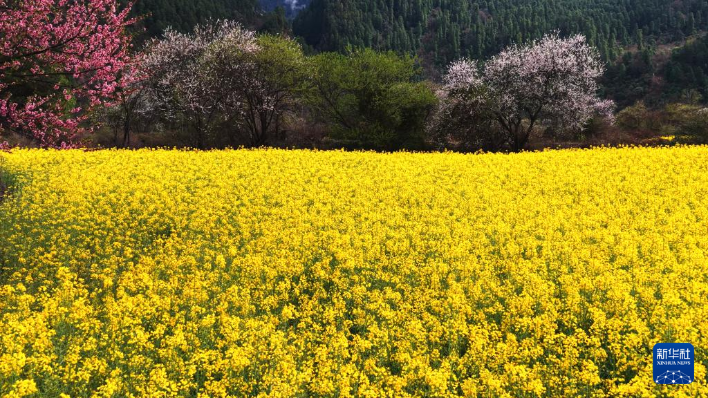 易贡油菜花田位于西藏林芝市波密县易贡乡。近期,连片油菜花竞相开放,桃花也缀满枝头,与远山相互映衬,构成一幅高原田园画卷。