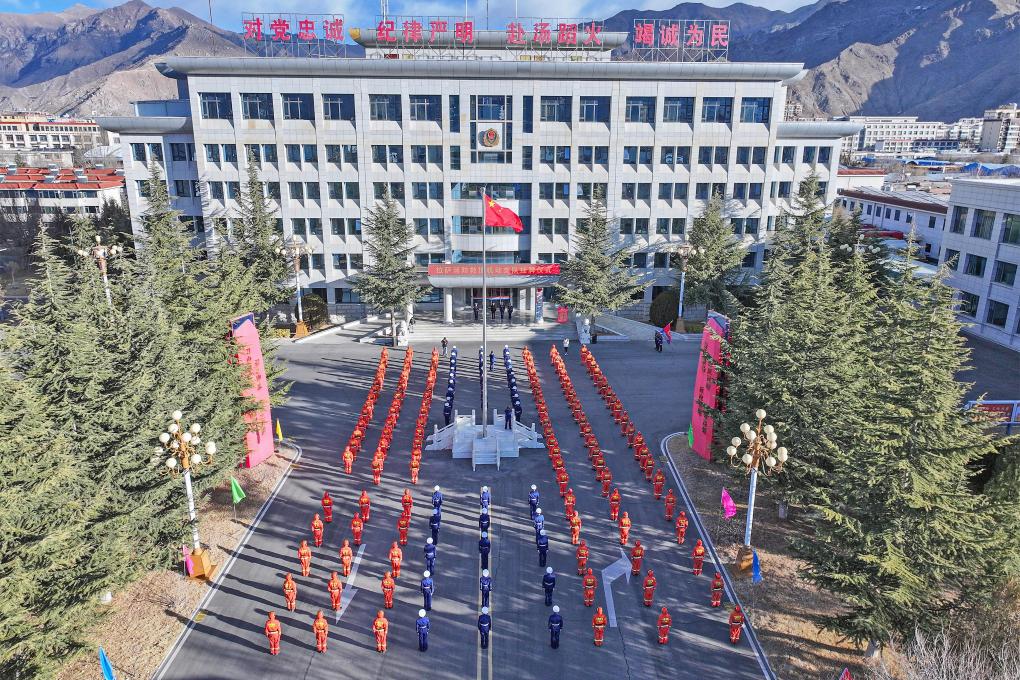 拉萨消防救援机动支队挂牌仪式在拉萨举行。